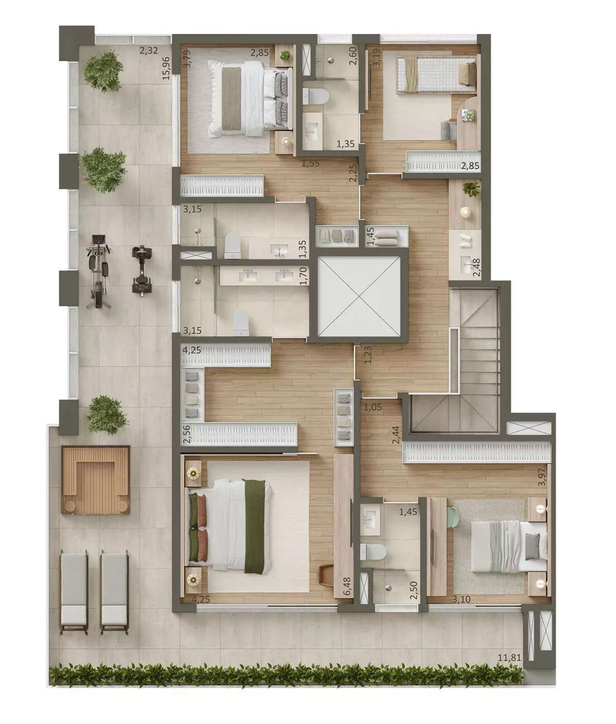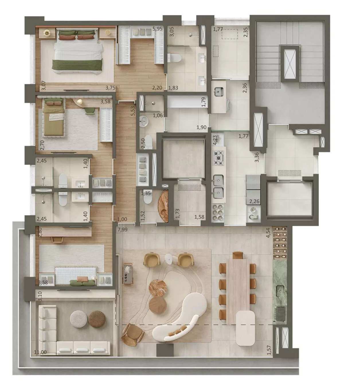 A arquitetura valoriza proporções, fluidez entre ambientes e estética elegante, proporcionando uma experiência única de moradia.