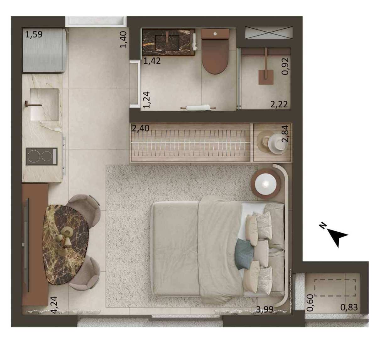 Os apartamentos foram projetados para máxima eficiência e conforto, com plantas 100% aproveitáveis, iluminação natural e layout moderno e flexível. Um produto alinhado com as tendências do mercado e com alta procura.