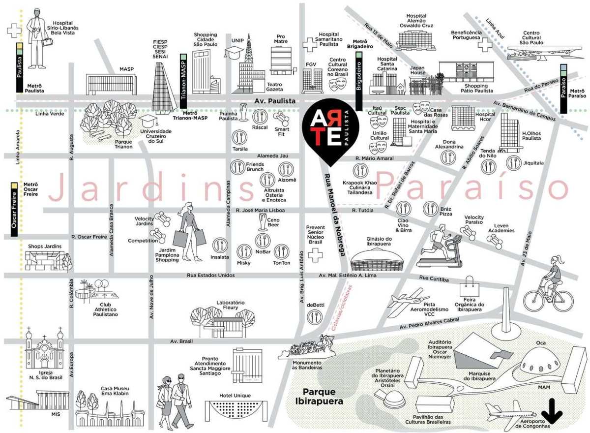 Localizado a apenas 600 metros do metrô Brigadeiro, o Arte Paulista está inserido em um raio de até 2 km com infraestrutura completa, incluindo hospitais, universidades, museus, teatros, shoppings, restaurantes e centros financeiros.